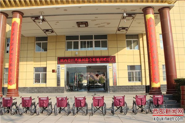 陕西省江苏徐州商会常务副会长谷传林和副会长张龙代表商会向山阳县民政局捐赠了轮椅