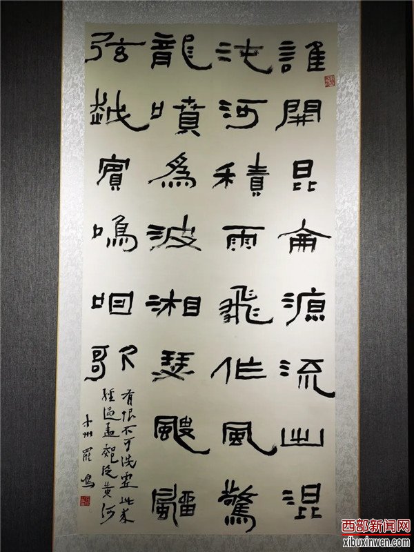 11月28日,为贯彻落实习近平总书记在黄河流域生态保护和高质量发展座谈会上的重要讲话精神,由西安市书协和郑州市书协联合举办的“互鉴创新 ‘豫’见长安——西安、郑州书法名家精品交流展”在西安亮宝楼隆重开幕。陕西省书协主席陈建贡,陕西省书协副主席、西安市文联副主席、西安市书协主席石瑞芳出席开幕式并讲话,陕西省书协名誉主席李成海宣布展览开幕,西安市文联办公室主任王朝社、协会部主任赵建鹏、西安市书协副主席兼秘书长石心剑、市书协副主席张之、呼延小舟、王江等出席开幕式。展览开幕式由陕西省著名播音主持人银河主持。西部新闻网重磅聚焦本次活动。