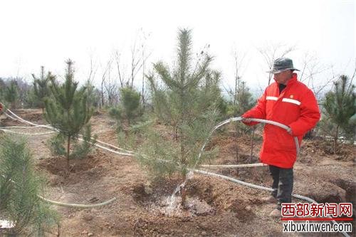 阳春三月的虢镇北坡阳光明媚,万物葱茏,一派生机盎然的景象,到处洋溢着春天的气息。虽然气候乍寒乍暖,不时还吹来袭人的寒风,但大家植树的热情高涨,工作劲头异常足。在区林业局技术人员的指导下,大家各自分工,默契配合,运送树苗、回填培土、扶植踩实、修盘浇水一系列环节都干的一丝不苟,紧张有序,现场呈现出一派火热繁忙的工作景象。短短一上午时间就栽植绿化苗木3500多株。