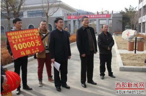 图片说明:2016年2月3日,陕西圣秦工贸有限公司总经理马喆同志,随同延安市工商联主席胡正郁等领导一起去敬老院看望老红军,送上米、面、油、春联、大红灯笼、10000元现金,献上自己的一份祝福。