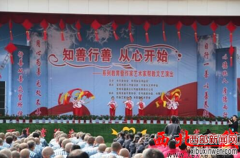 本报讯(记者 李喜林)4月10日下午,春光明媚之际,由宝鸡市作家协会、陕西省宝鸡监狱主办,宝鸡市职工作家协会、市音乐文学学会、宝鸡盛典文化传媒公司承办的“知善行善,从心开始”系列教育暨宝鸡作家艺术家走进宝鸡监狱帮教文艺演出在宝鸡监狱举行。十多个精彩的文艺表演或鼓舞人心,或感人肺腑,唤醒着善行善知。