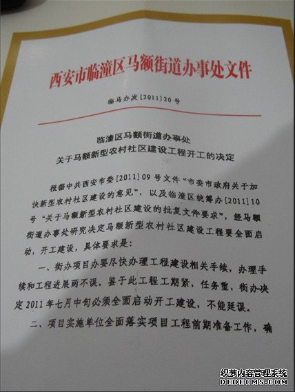 随后,记者来到临潼区马额街办核实情况。马额街办陈副书记向记者介绍了该项目的情况,这项目的土地原来就是集体建设用地,街办结合市上《关于加快新型农村社区建设的意见》的文件精神实施这个项目。这个项目的初衷是,在马额街办辖区北边有个沟,沟中还有几个小组住在滑波地带,由于下雨下雪经常滑波,居住环境很不安全,再加上街办还有部分群众居住在山区零散户,为了解决群众住房,街办考虑把他们都集中到安全地方安置,彻底解决农民住房问题。房源有政府出台统一分配方案,目前不能进行销售,首先要解决搬迁户的住房问题,然后剩余的房源再处理掉。