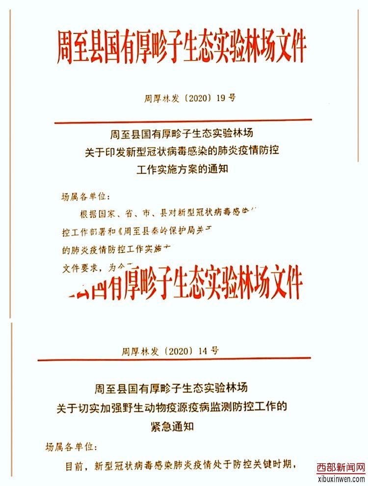 厚畛子生态实验林场位于秦岭腹地、西安水源地、秦岭大熊猫走廊带的特殊生态区位,是西安市管辖最大的林场,这就决定了林场担负了森林资源管护和野生动物保护的重大责任,而森林防火则是确保森林资源安全的重中之重。在疫情防控的关键时期,林场全力以赴做好森林防火工作。9个森林管护站取消休假,全员上岗,同志们每日顶风冒雪、爬山涉水,佩戴口罩宣传,自带干粮开水,不进群众家里,张贴森林防火和野生动物保护宣传单8000余份,每日通过微信和电话短信等形式向村干部、瞭望哨户防火宣传和林情咨询1至2次,使森林防火深入人心;组织管护员每日深入山头地块和沟道梁脊,严查林区野外吸烟用火、偷砍盗伐、设夹放套、设置电猫捕猎等违法犯罪行为;场领导按照责任分工亲子带队深入林区防火宣传,实地检查,量化考核,压实责任,使森林防火各项工作落到实处,确保了森林资源安全。西安商网 (邢震)